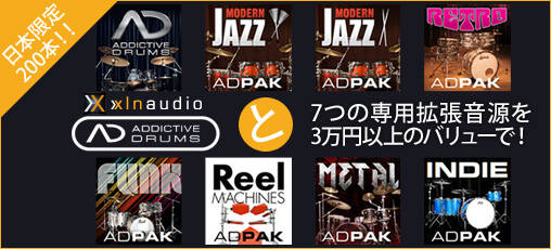 そのAddictive Drumsと現在リリースされている7つの専用拡張音源すべてが一つになった、数量限定発売の特別パッケージ「AD Mega Bundle 3」が登場!これだけの拡張音源があれば、あらゆる楽曲制作に即戦力で使えます!またご自分の作ってるジャンル外の音源を使うことにより、これまでの作品とは一味も二味も違う楽曲を仕上げることも可能でしょう。