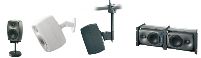 GENELECスピーカーは、そのラインナップの多さから、プロ現場でのモニタースピーカに限らず、一般家庭のオーディオやホームシアターなどとしても広く導入されています。壁や天井に取る着けるためのアクセサリ等も多数出ているため、サラウンドの設計の際にも非常に汎用性が高く、柔軟にシステムに取り入れられます!!