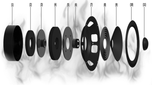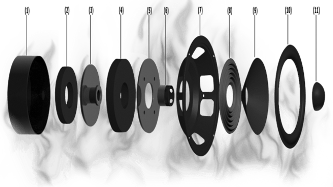 SM9に惜しみなく投入されたFocal特許技術の一つが「ベリリウムリバースドームツイーター」。一番のトピックはベリリウムの特性で、ダイヤモンドと並び称されるほど硬く、そして低質量=軽いという特性は、高いインパルスレスポンスとダンピング性能を生み出します。それを15ミクロンという薄さに加工し、リバース型のドームツイーターを創り出す技術はFocal独自のもの!! またCMSシリーズでも採用されているWコンポジットのポリグラスコーンはグラスファイバーをサンドイッチする構造で設計による特性コントロールを可能にした画期的な手法。この高剛性、高減衰特性を実現したコーンは豊かでも飽和しない締まった低域を再現しリニアな音場を創り出します。このテクノロジーが30Hz-40kHzというレンジを再現し、レベルの大小に関わらず周波数特性が保たれるというFocal最大の美徳をフラッグシップのクオリティで達成しています!!