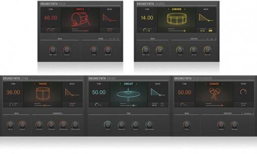 MASCHINE 2.0用に作成された5つのモノフォニックドラムプラグインは、必要なパーカッションサウンドを追求するための独自のアルゴリズムを採用しています。