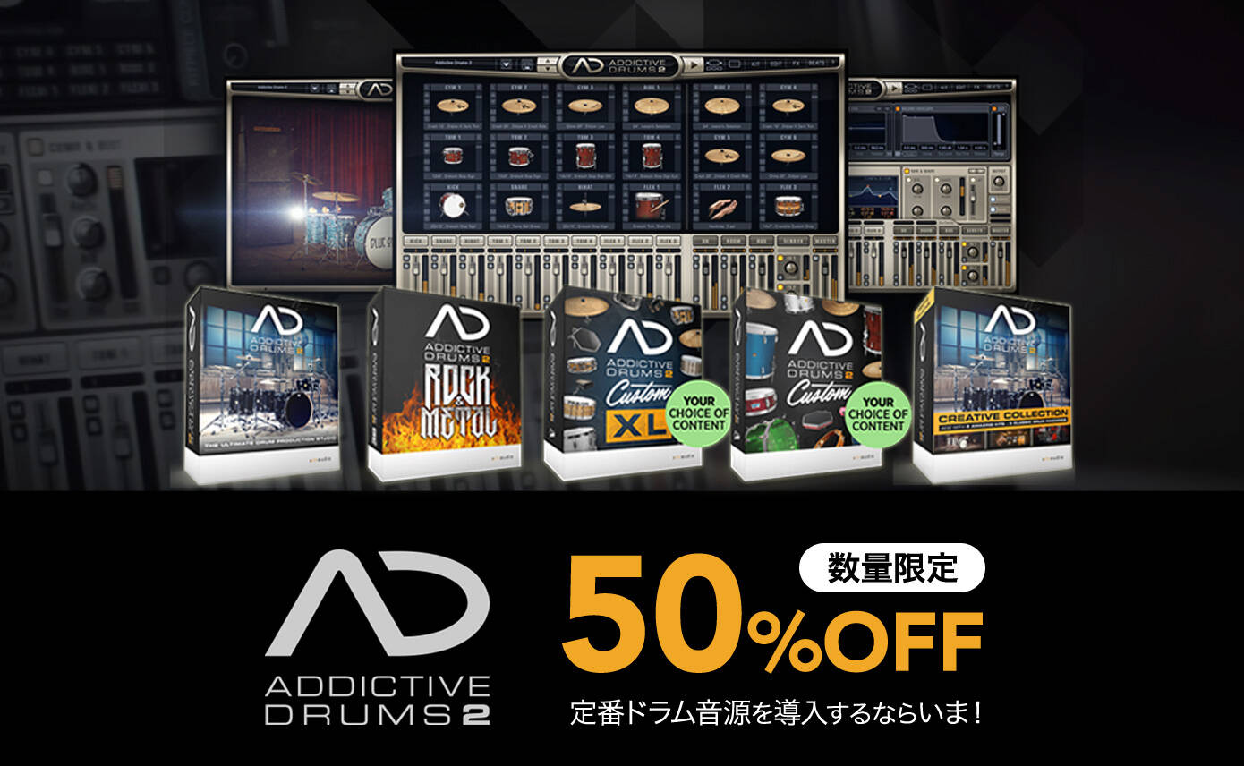 • XLN Audio Addictive Drums 2 が数量限定で50%OFF!豊富な拡張音源も魅力の定番ドラム音源を導入するならいま!