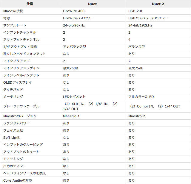 『Duet 2』はUSB2.0接続、192kHz対応、Soft Limit搭載、4アウトプット、1/4″アウトプットバランス対応など数々の進化を遂げています!高解像度のフルカラーOLEDディスプレイ搭載によりメーター表示、入出力レベルなど複数の情報を直感的に得ることができ、エンコーダノブの両脇に配置された2つのタッチパッドにはミュート、ディマーなど任意の機能をアサイン可能。ライン出力とヘッドフォン出力が独立し4アウトプット仕様になったことによりDJユースや、ライブでのクリック出力などにも対応出来るようになりました。