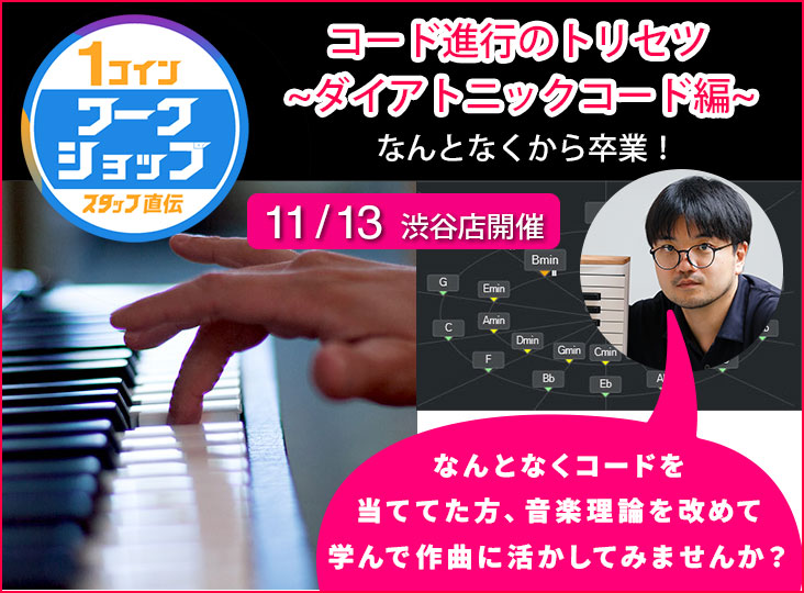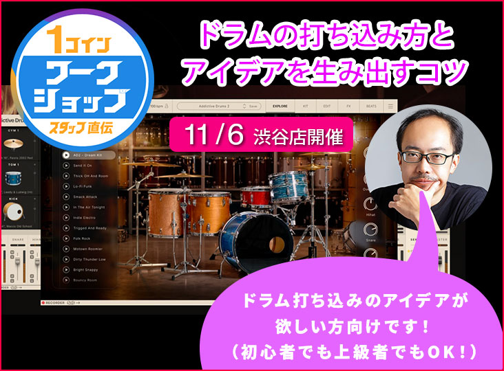 音楽制作において“これだけは外せない!”というスタッフの偏愛するアイテムやテーマを、気軽に30分で体験できる「1コインワークショ…