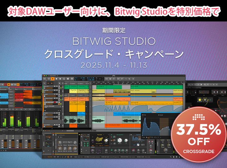 Bitwig Studioが対象DAWソフトユーザー向けに特別価格で提供するクロスグレードキャンペーンがスタート! 他社対象DA…