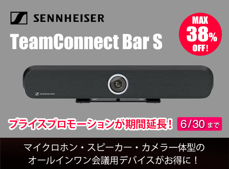 設置してすぐ高品質。TeamConnect Bar Sはカメラ・マイク・スピーカー一体型のオールインワン会議デバイス。今だけ特別…