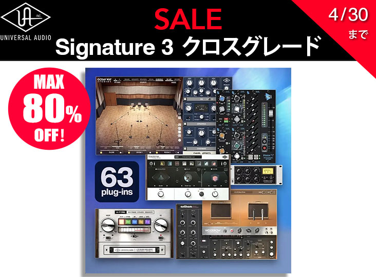 63種のネイティブプラグインを収録した『UAD Signature 3 Bundle』へのクロスグレードが史上最安に。対象バンド…
