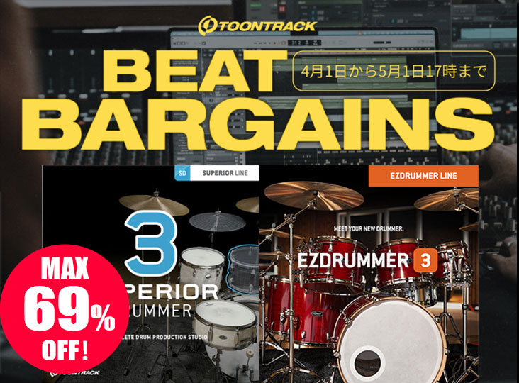 『Superior Drummer 3』『EZdrummer 3』『EZbass』『EZkeys 2』が25%OFF、拡張音源・…