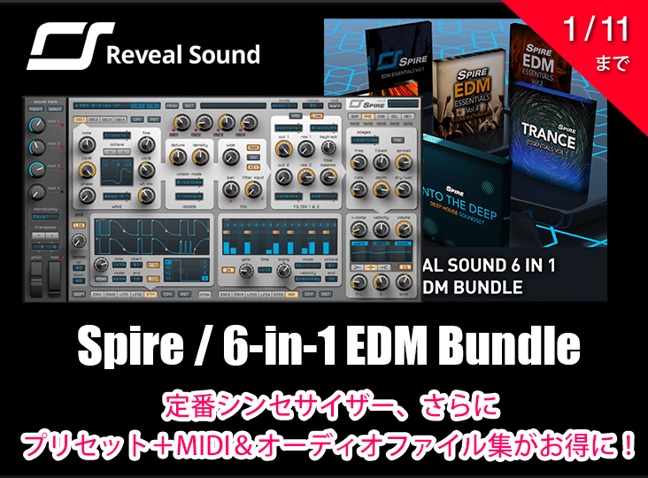 シンセプラグインの定番「Spire」とEDMに特化したプリセット集「6-in-1 EDM Bundle」が、60%OFF!