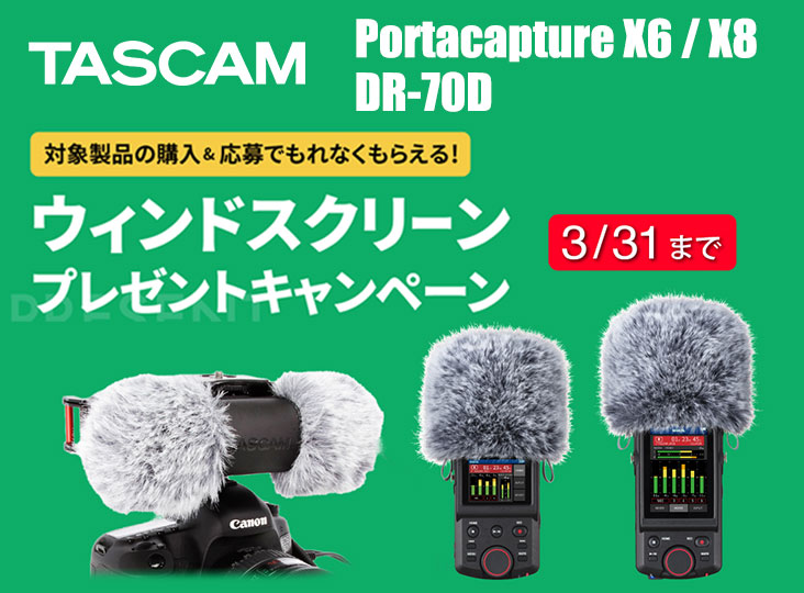 TASCAMがキャンペーン期間中に対象製品購入で、ウィンドスクリ…