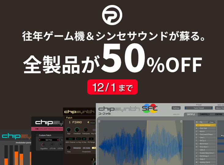 往年のゲーム機や伝説のFMシンセを精巧に再現。懐かしのサウンドをDAWで自由に演奏可能な全製品が半額です!