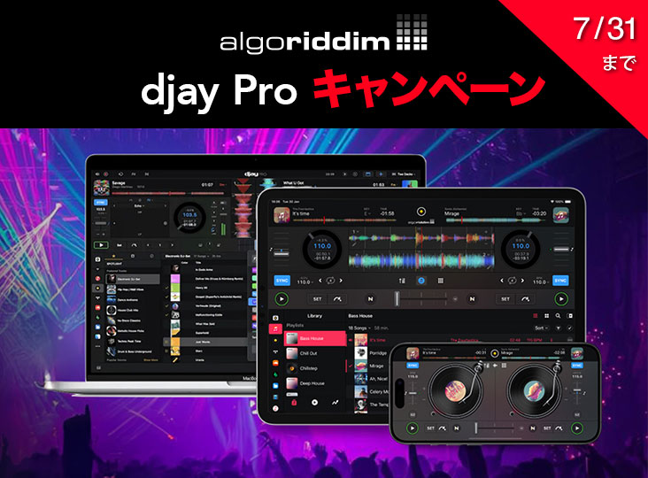 対象DJコントローラー購入で、djay Pro(Pro版)1年分を数量限定プレゼント!Algoriddim が提供する4デッキ/…
