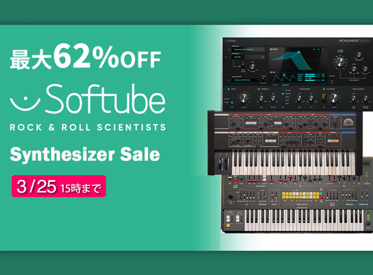 Softube の人気シンセがスペシャルプライス。80sシンセの空気感から極太ベースまで、存在感抜群の3タイトルをお得に導入!