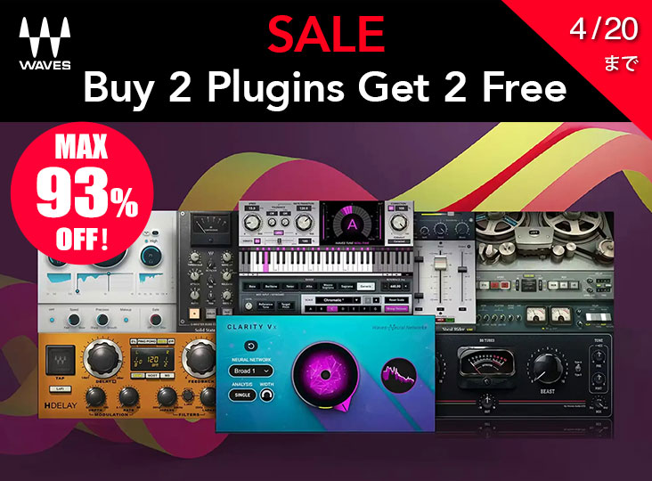 対象プラグインを2つ買うと2つ無料進呈!業界標準の230種以上から自由に選べ、ミックスの質を劇的に高めるチャンスです。30年の実…