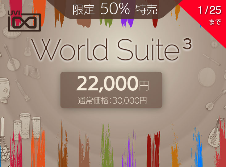 世界中の音楽文化を網羅するUVI World Suite 3が半額!430音源・12,000超のループで、リアルなワールドサウン…
