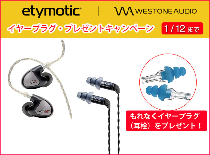「Etymotic」「Westone Audio」の対象製品購入者を対象に、もれなくEtymotic製イヤープラグ(1セット)を…