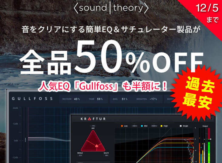 Soundtheory社によるセール開催!音をクリアにするイコライザー「GULLFOSS」、サウンドのパワーを増加させる2mix…