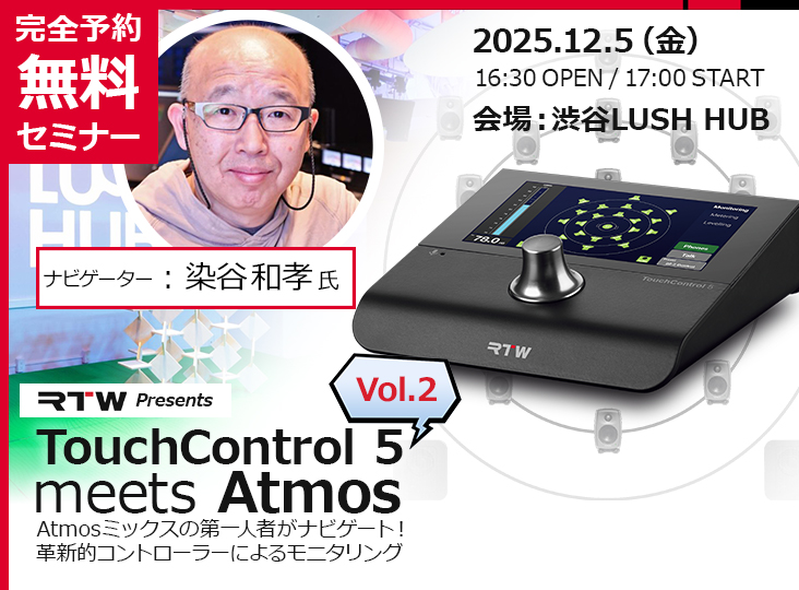 RTW TouchControl 5 をフィーチャーした、サウンドデザイナーの染谷和孝氏による、Dolby Atmos制作のトー…
