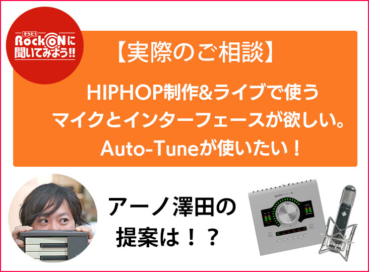 お問い合わせ内容 「HIPHOP制作&ライブで使うマイクとインターフェースが欲しい。さらにAuto-Tuneが使いたい…