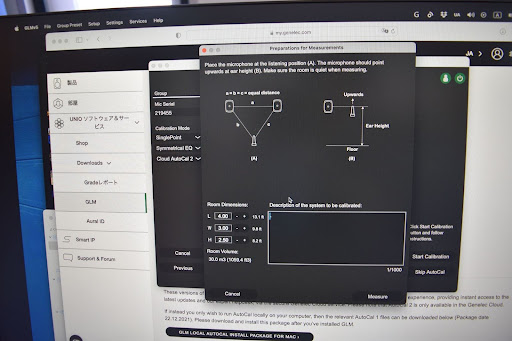 いろいろ距離を測ってスピーカーの位置を調整し、測定開始!