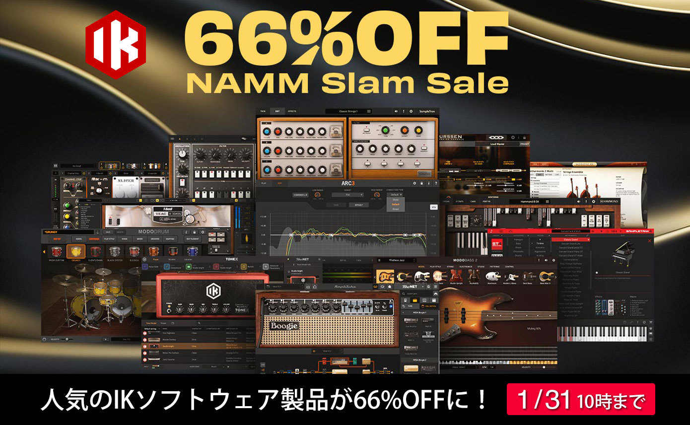 NAMM Show 2024出展を記念して、IK Multimediaの人気ソフトウェア製品が66%OFFとなるプロモーションがスタートしました!