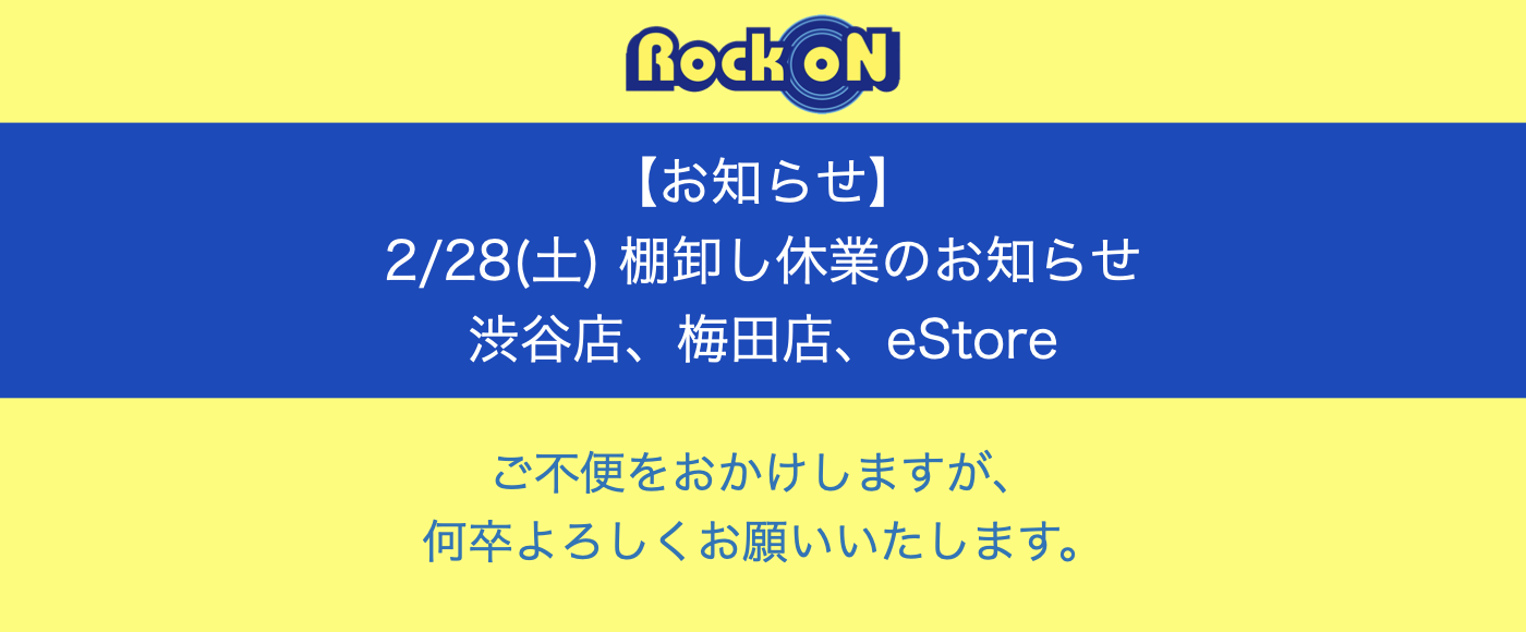Rock oN渋谷店/梅田店は全社棚卸しのため、休業致します。 eStoreは受注業務のみ行います。 皆様にはご…
