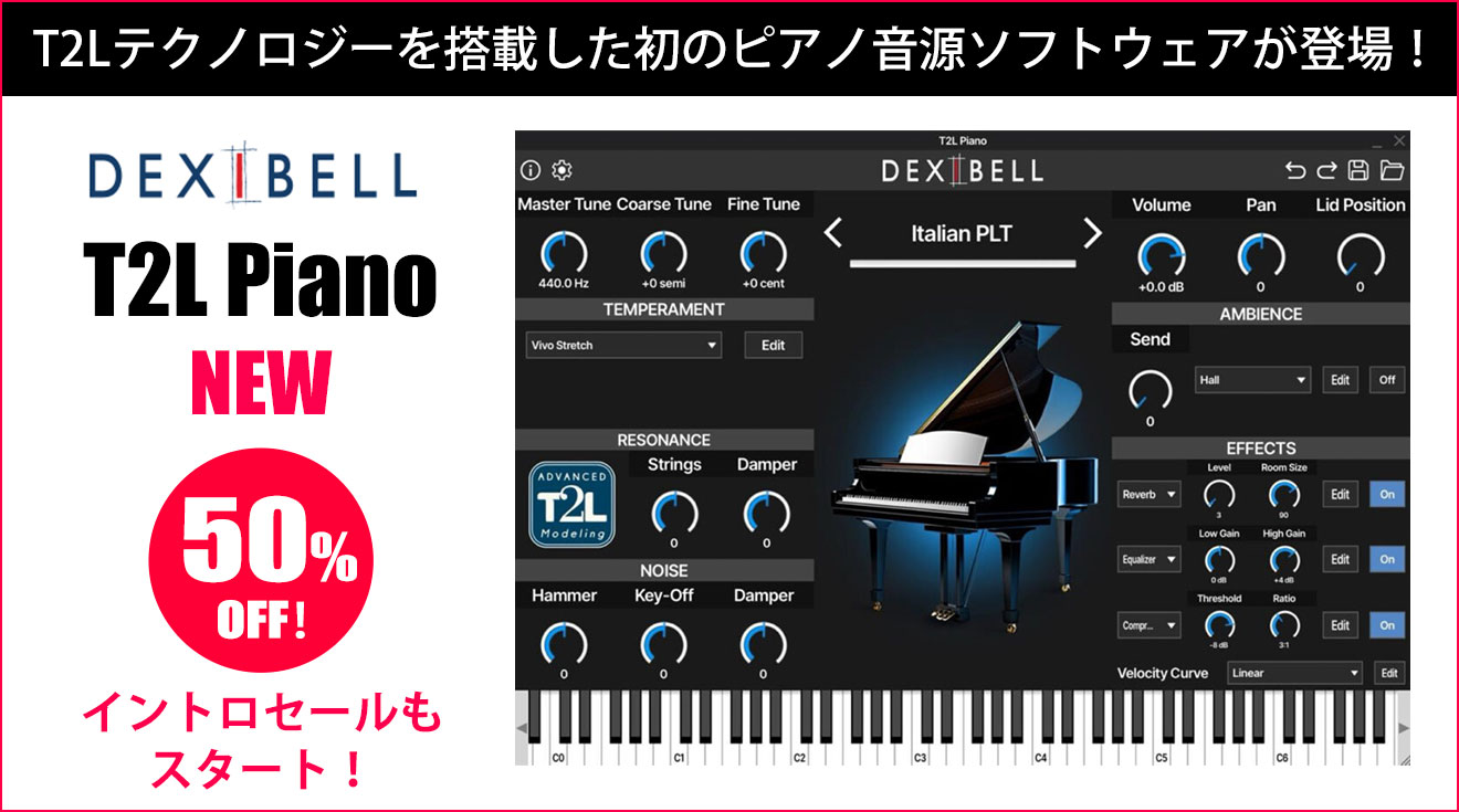 同時にT2L Pianoの発売を記念して、イントロプライス・セールとして期間限定で50%OFFに!