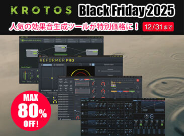 革新的なサウンドデザインアプリケーションをリリースするKROTOS製品が最大80%OFFとなる「Krotos Black Friday 2025」がスタートしました! 今年のKrotosのブラックフライデーセールは、De [……