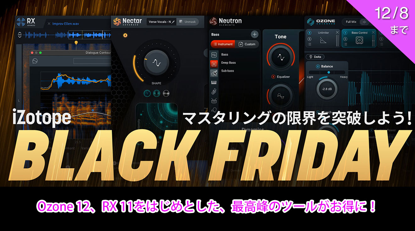 そしてOzone 12をリリースして初となるBlack Fridayでは、マスタリングの限界突破をサポートするプライスと日本限定コンテンツを提供!