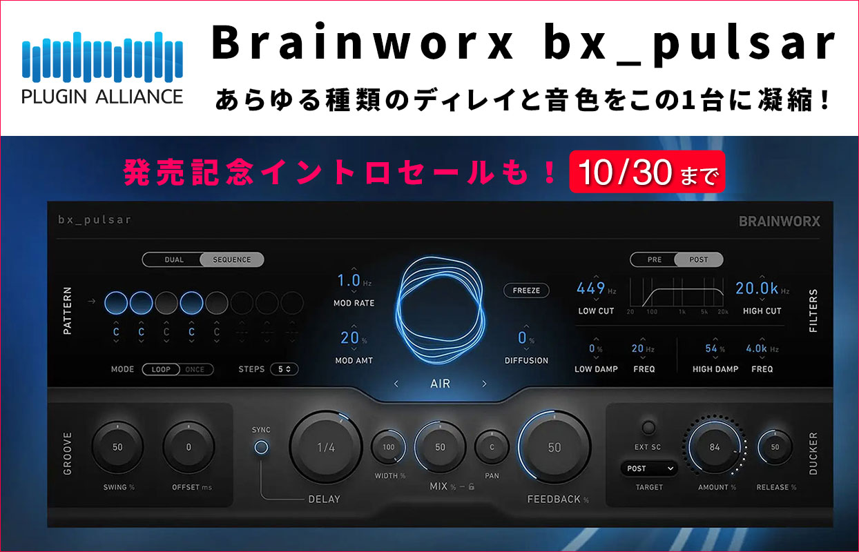 Plugin Allianceがあらゆる種類のディレイと音色を1台に凝縮した「Brainworx bx_pulsar」を発売!
