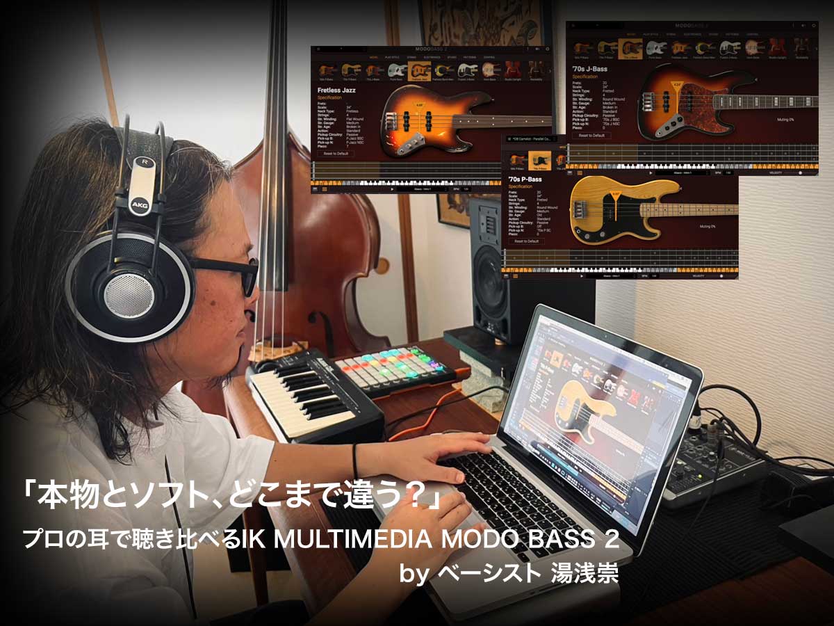 ベースが生み出す低音のグルーヴは、音楽の心臓部と言っても過言ではありません。そんな“縁の下の力持ち”をどこまでリアルに再現できるのか。今回、プロのベーシストに16小節のベースラインを、いくつかのジャンルに分けて弾いてもらい、その同じフレーズをIK MULTIMEDIAの最新物理モデリング音源「MODO BASS 2」で打ち込み、徹底比較してみました。