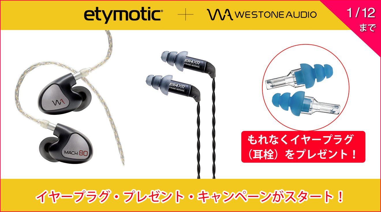 「Etymotic」「Westone Audio」製品の購入者を対象に、もれなくEtymotic製イヤープラグ(1セット)をプレゼントするキャンペーンがスタート!