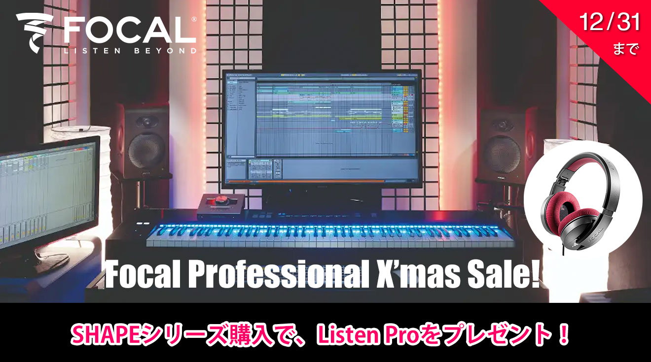 Focalの対象スピーカーペアをご注文いただいた際に、モニターヘッドフォン「Listen Pro」1点を無償提供する「Focal Professionalクリスマスセール」がスタートしました!