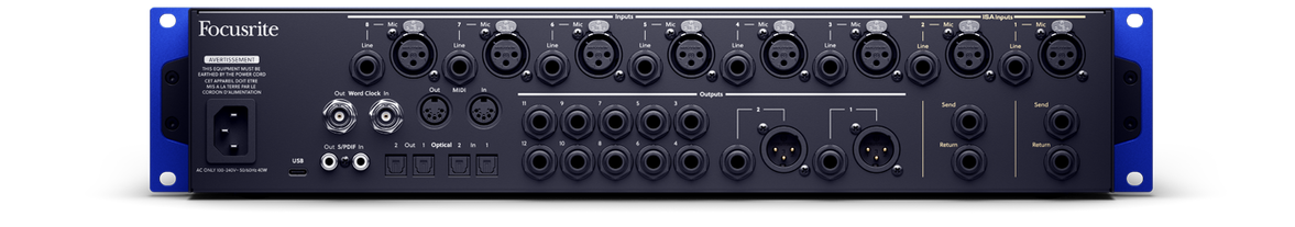 2基のISAプリアンプに加え、リモートコントロール対応の超低ノイズFocusriteマイクプリアンプを6基搭載。最大69dBのクリアで高解像度なゲイン、アナログ回路によるAirモード、質感を段階的に調整できるDrive機能を備え、演奏のあらゆるニュアンスを忠実に捉えます。