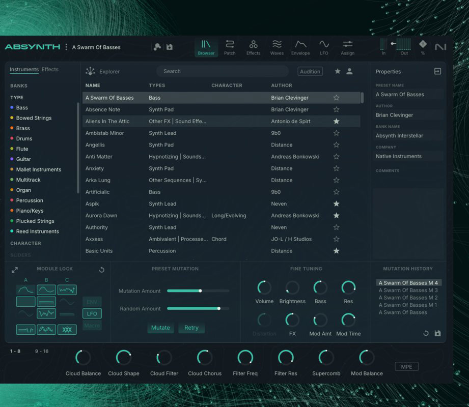 新たなMutatorでは、従来のランダムとは異なる“知的なプリセット生成(intelligent preset generation)”を採用し、変化量・深度のコントロールや履歴管理にも対応。創造性のトリガーとして強力な役割を果たします。
