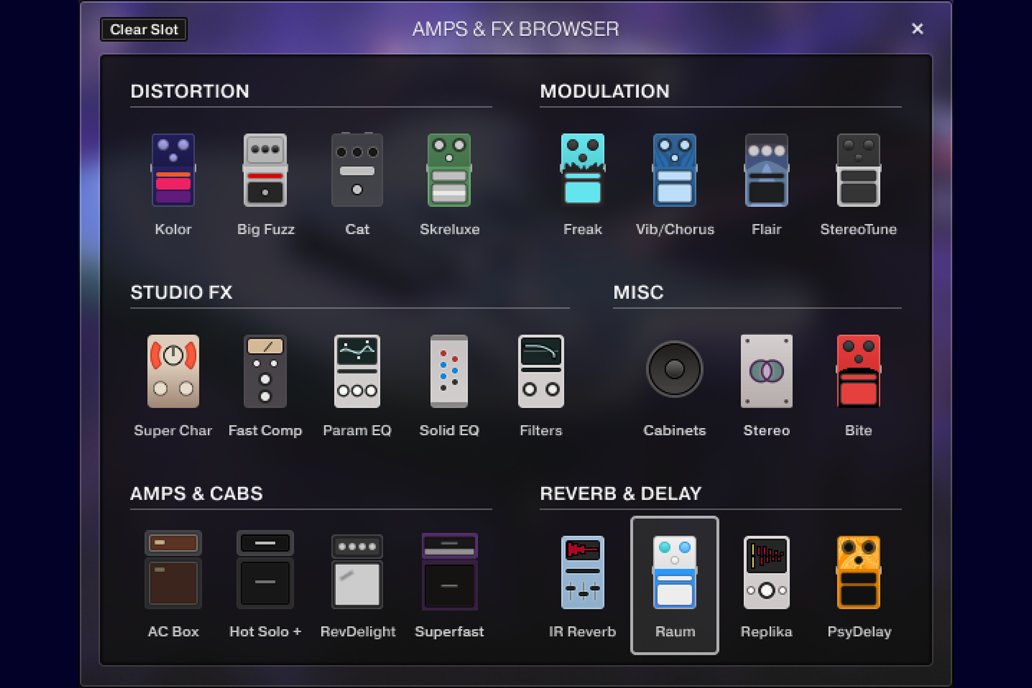 30種類のハンドメイドのエフェクトおよびアンプチェーンを搭載。パンチの効いたクラブ向けサウンドから、豊かな空間的テクスチャーまで、エレクトロニック・ミュージックの制作に最適です。