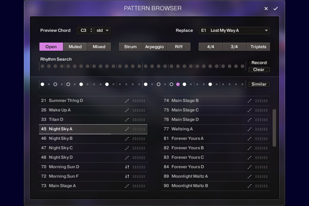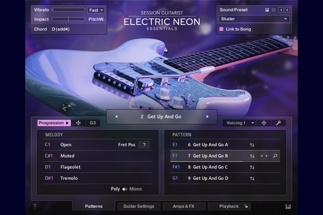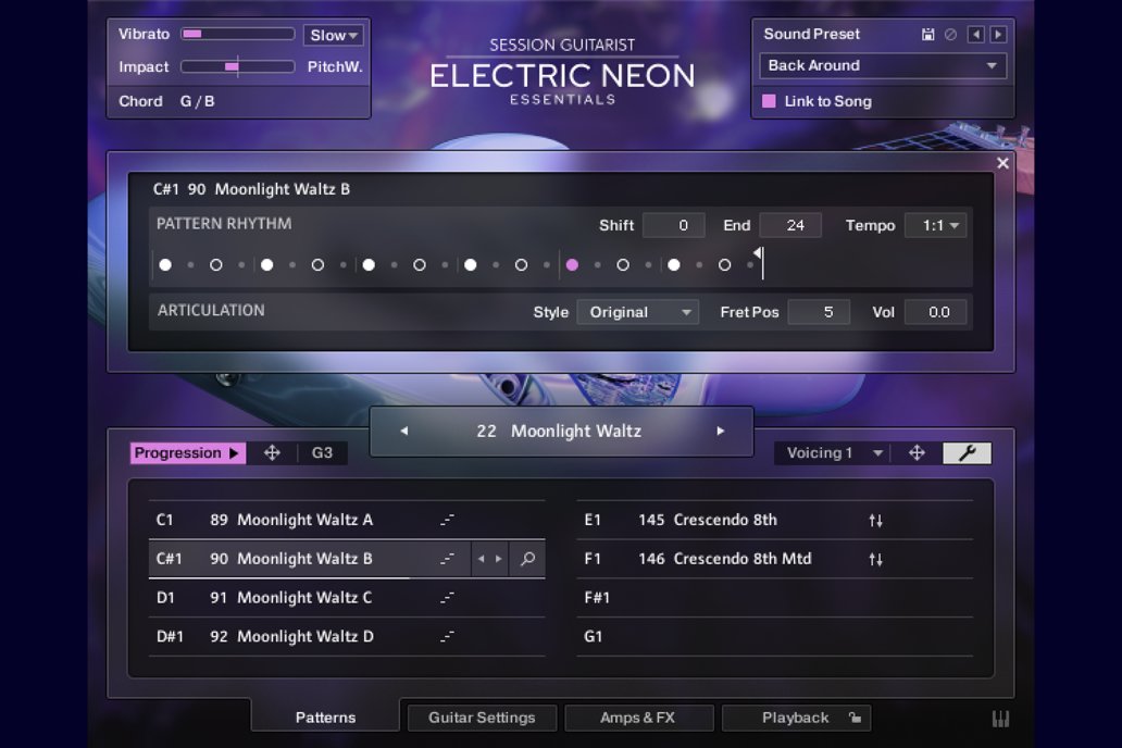 パターンベースの演奏エンジンと表現力豊かなメロディモードを搭載し、モダンなエフェクトチェーン、演奏可能なアーティキュレーション、ジャンルに適したサウンドプリセットを備えています。全てはKontakt 8上でシームレスに動作し、NKSにも完全対応。ギター経験が無くても、あなたのビート、スタイル、フローで直感的に演奏できます。