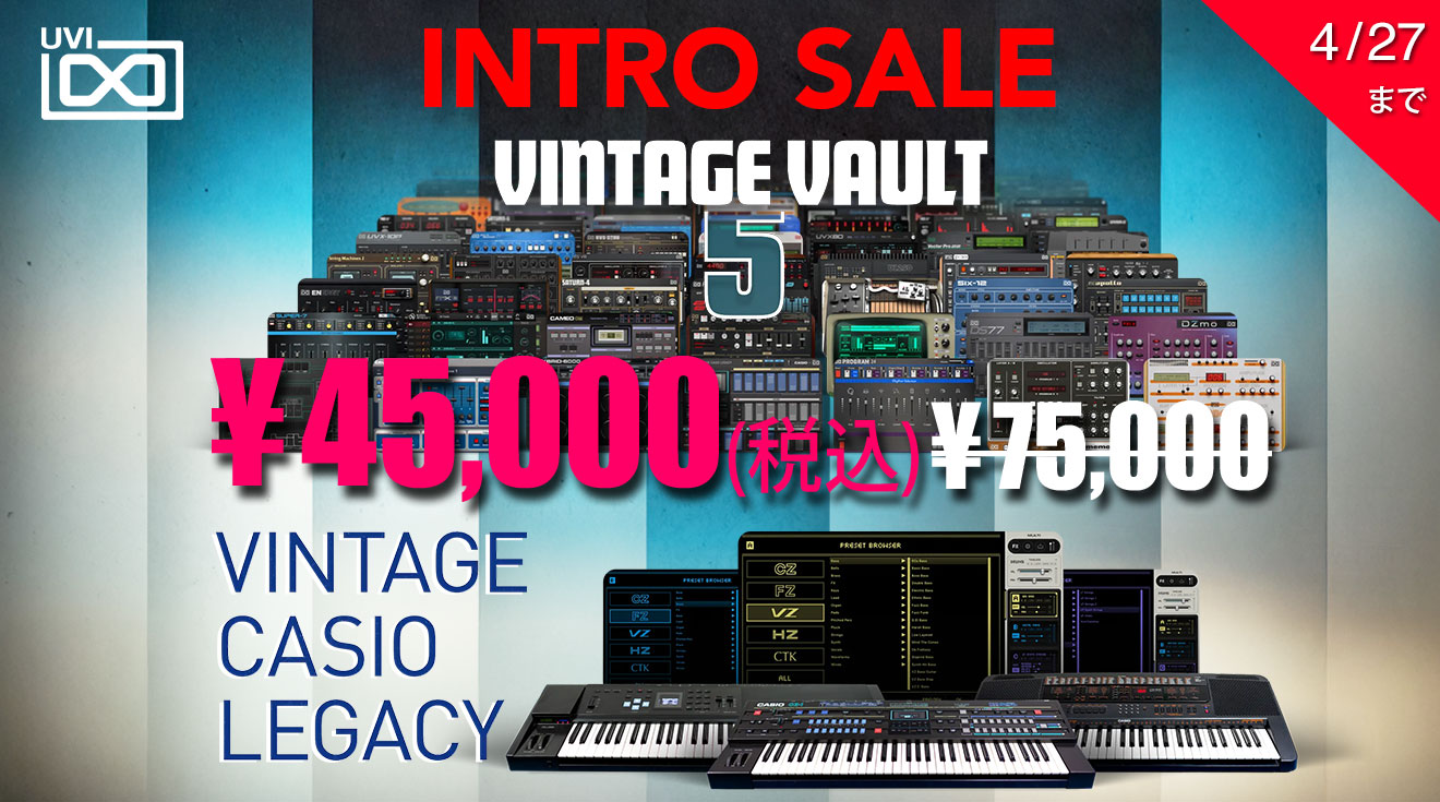 UVIから新音源「Vintage CASIO Legacy」とビンテージシンセバンドルの最新版「Vintgae Vault 5」が登場しました!