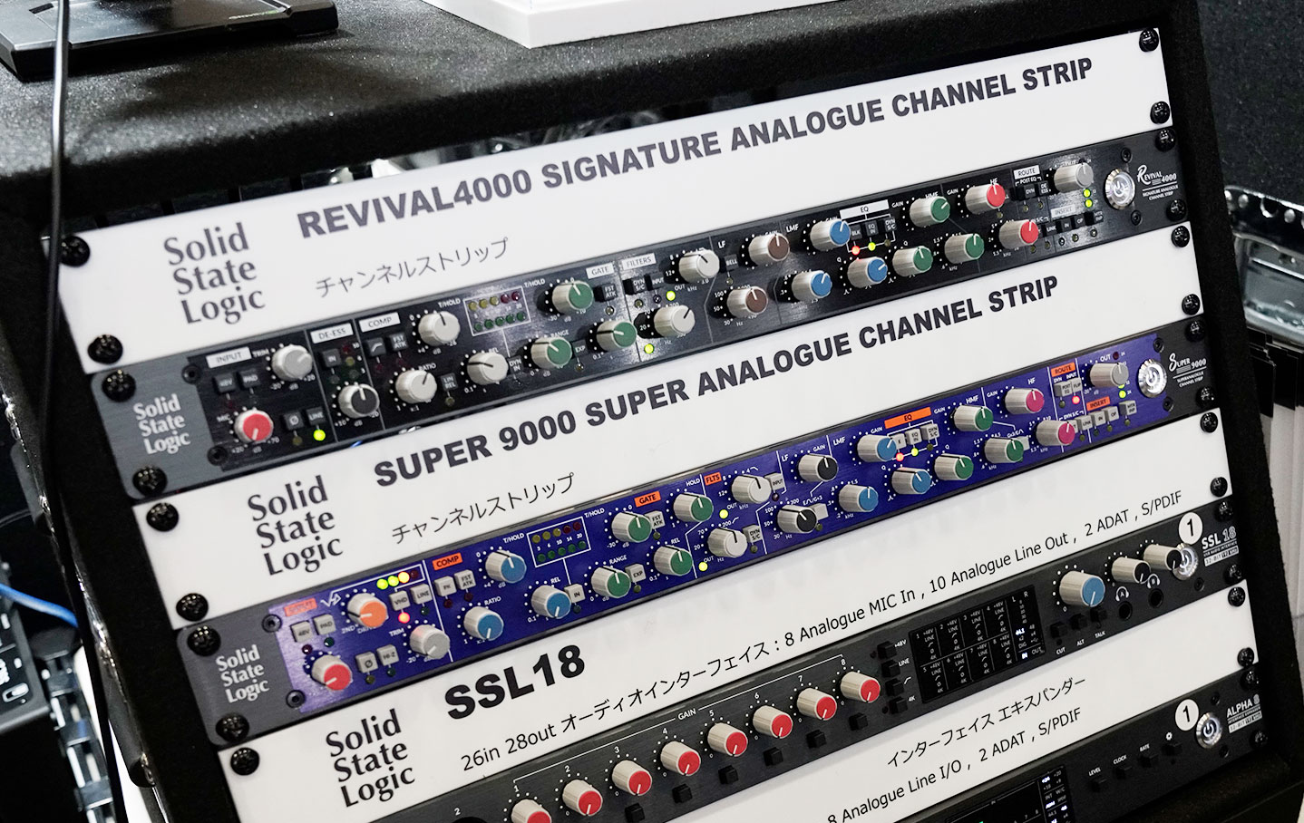 今年発売された「Revival 4000 Signature Analogue Channel Strip」と並んで、12月4日発売がアナウンスされたばかりの「Super 9000 Super Analogue Channel Strip」が展示!
