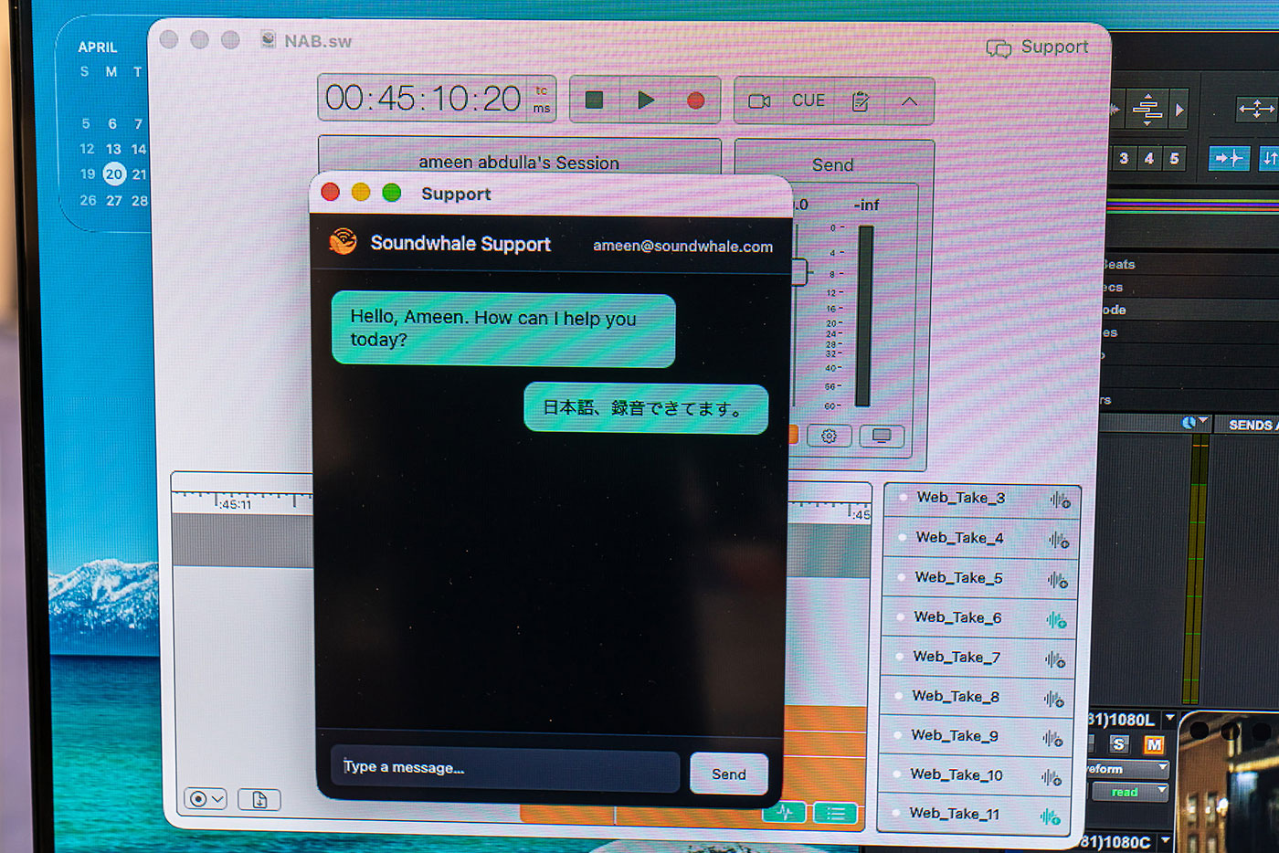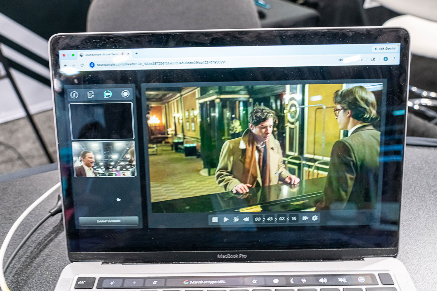 今回のバージョンアップでは、ブラウザからのプレビュー、iOSとの連携など、その映像のやり取りに関する機能が驚くほど向上しています。こちらは、ブラウザからのプレビュー。Pro Toolsで再生された映像が、遠隔地のブラウザで見れています。左側には、ビデオチャットの画面が。