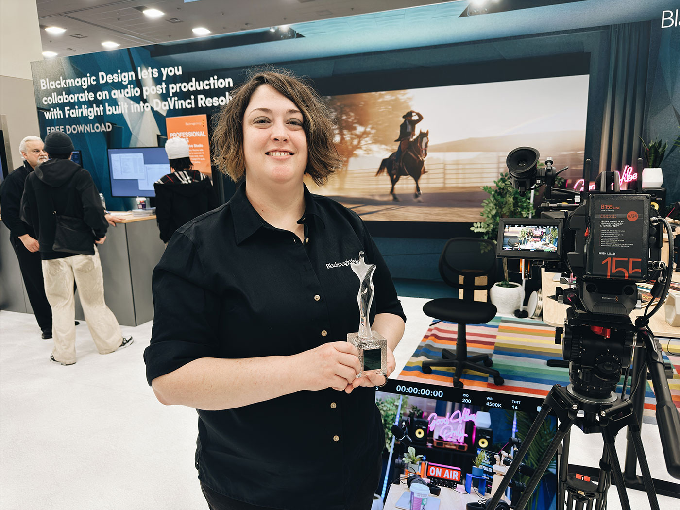 Blackmagic Designのブースでは、Rock oN AWARD 2026の中のVideo Equipment AWARD(最も優れた映像・配信用機材を選出する)に「Blackmagic URSA Cine Immersive」が選ばれたことを祝して、トロフィーを贈呈!