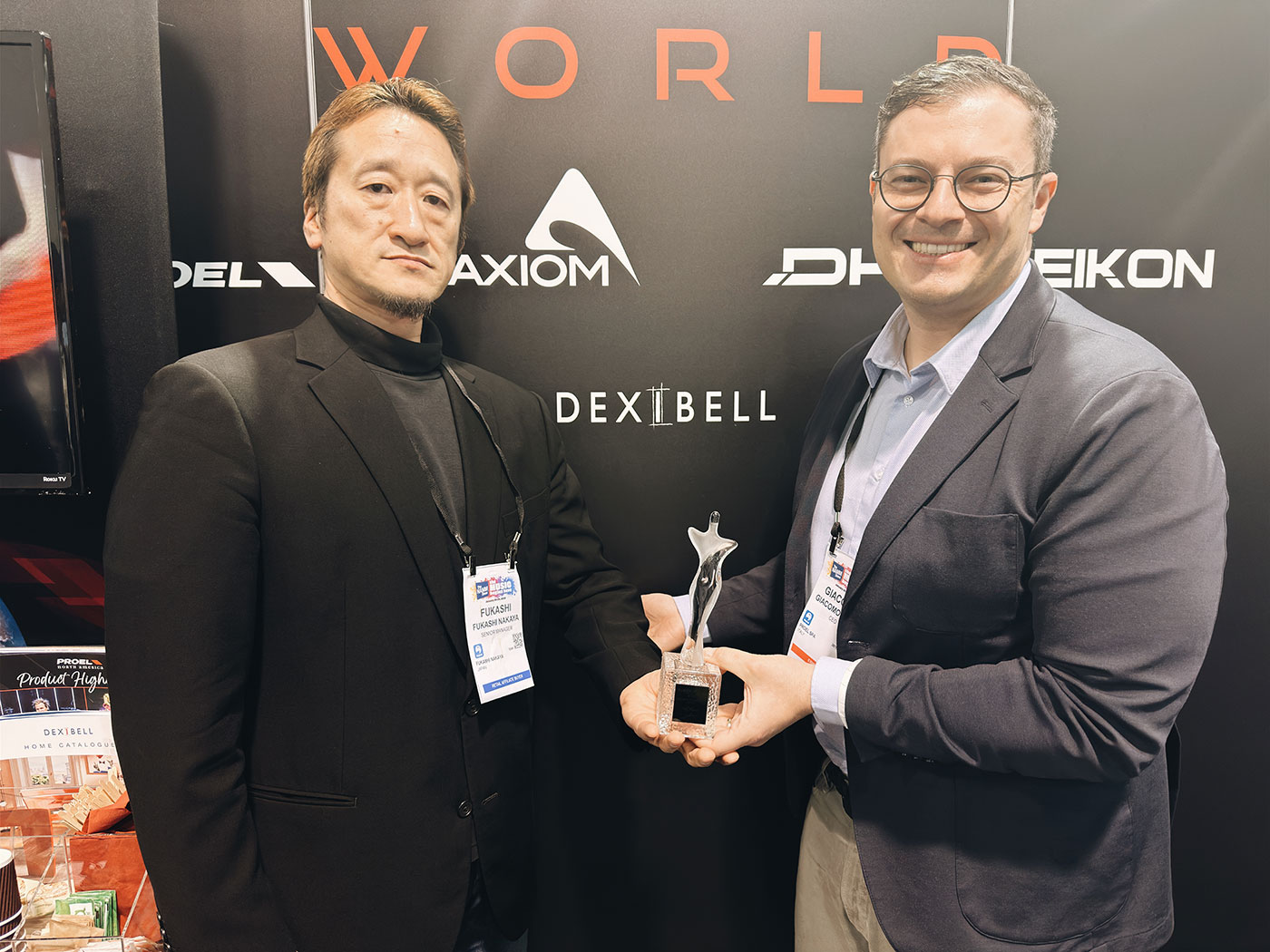 イタリアのデジタルピアノブランドDexibellのブースでは、Rock oN AWARD 2026のInstruments Software AWARD(最も優れたソフトウェア音源)に、T2L Pianoが選ばれたことを祝して、トロフィーを贈呈!