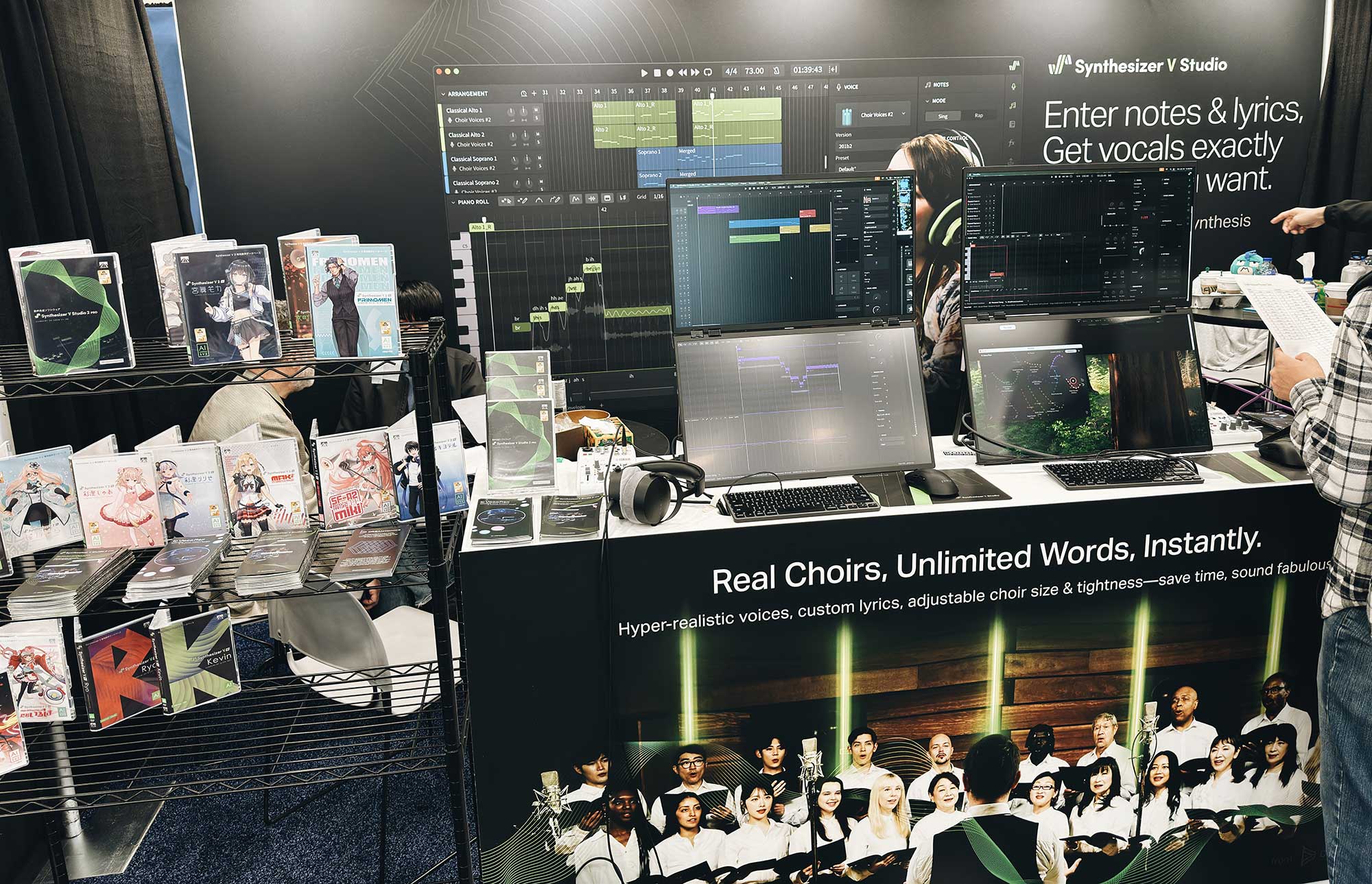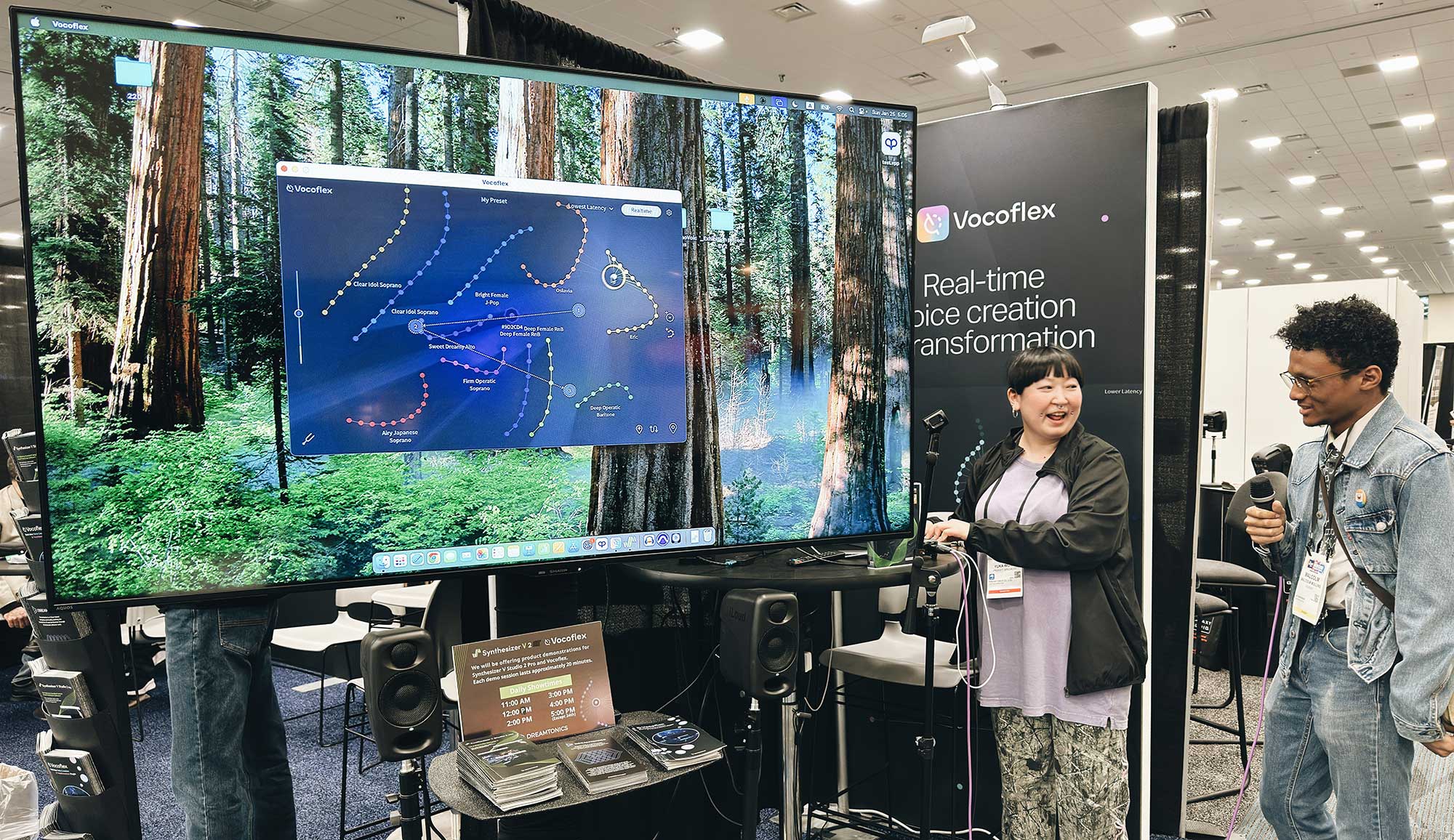 Synthesizer Vの開発元でお馴染みのDreamtonicsブースでは、AI技術を駆使したリアルタイム音声モーフィングプラグイン「Vocoflex」のデモが行われていました!