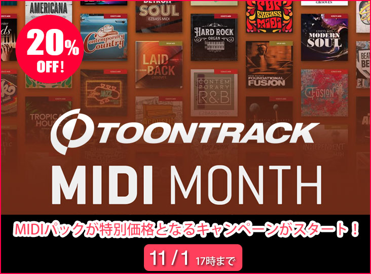 MIDIパックが20%OFFとなる「TOONTRACK MIDI…