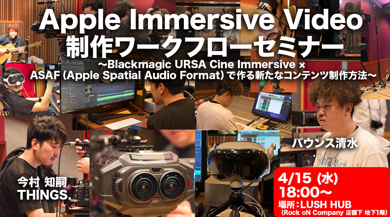 THINGS.とRock oNによる実制作をもとに、音響はバウンス清水がAMBEO VR MICを含む録音〜ミックス工程を、映像は今村知嗣氏がURSA Cine ImmersiveとDaVinci Resolveによる撮影・編集を紹介。映像と音がどのように融合し、イマーシブ作品として完成するのかを実践的に学べる内容です。