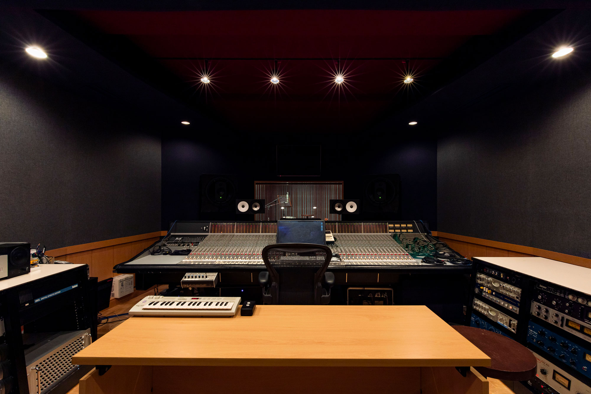 コントロールルームにはカスタムされたSSLコンソール、 圧倒的な解像度のラージモニタリングスピーカー・musikelectronic geithain RL901Kを配し、最高のモニタリング環境。