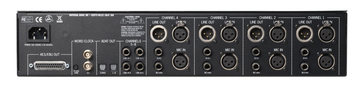 4-710Dは710 Twin-Finityで絶賛されたソリッドステイト/真空管ブレンド機能を持った4チャンネルマイクプリアンプ/DIに、1176タイプのダイナミクスとA/Dコンバーターを複合した、Universal Audioが誇る複合アウトボードです。ラックマウント型(2U サイズ)のハードウェアで、スタジオの フロントエンドとしての役割が中心です。