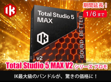 IK最大の統合バンドル「Total Studio 5 MAX V2」が特別価格!145以上の製品を収録し、作曲からマスタリングまで音楽制作をフルサポート。