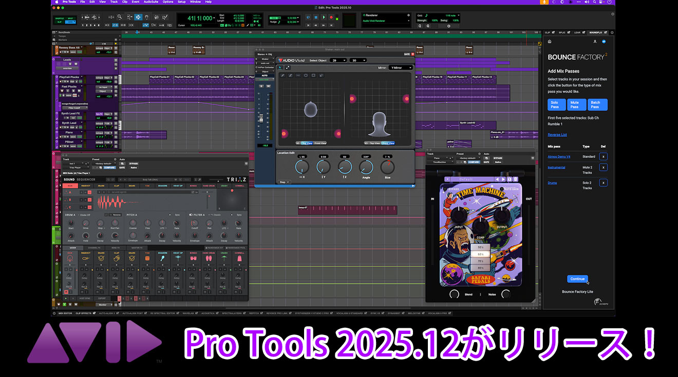 Pro Tools 2025.12は、今年3番目のフィーチャー・リリースで、新たなイマーシブ・オーディオ・フォーマットへの対応、強化されたSoundFlow機能、そしていくつかの特典を提供します。