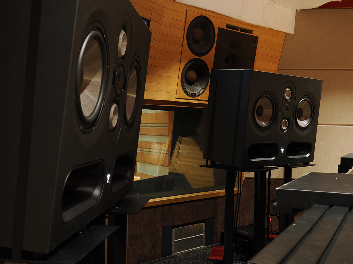 ③ ウーファーとキャビネット キャビネット設計では、「音はスピーカーから出るべきであり、キャビネットから出るべきではない」という哲学に基づき、キャビネット自体の共振を抑える徹底的な研究が行われました。フロントパネルは5cm(50mm)の厚さがあり、内部にはパイプを組み込むことで強心エネルギーを吸収する構造となっています。ポートについても研究が重ねられ、ポートノイズが一切ない形状(フレアポート)が実現し、高いSPLを達成しています 。また、バスレフポートを塞ぐためのアクセサリーも販売されており、その場合もアンプ側で補正を行うことで、正確なモニタリングが可能です。Utopia Mainは、ナッシュビルのブラックバードスタジオ(https://blackbirdstudio.com/)のスタジオCに持ち込まれ、グラミー賞ノミネート経験を持つ多くのエンジニアによるテストとレビューを経てブラッシュアップされた製品です。