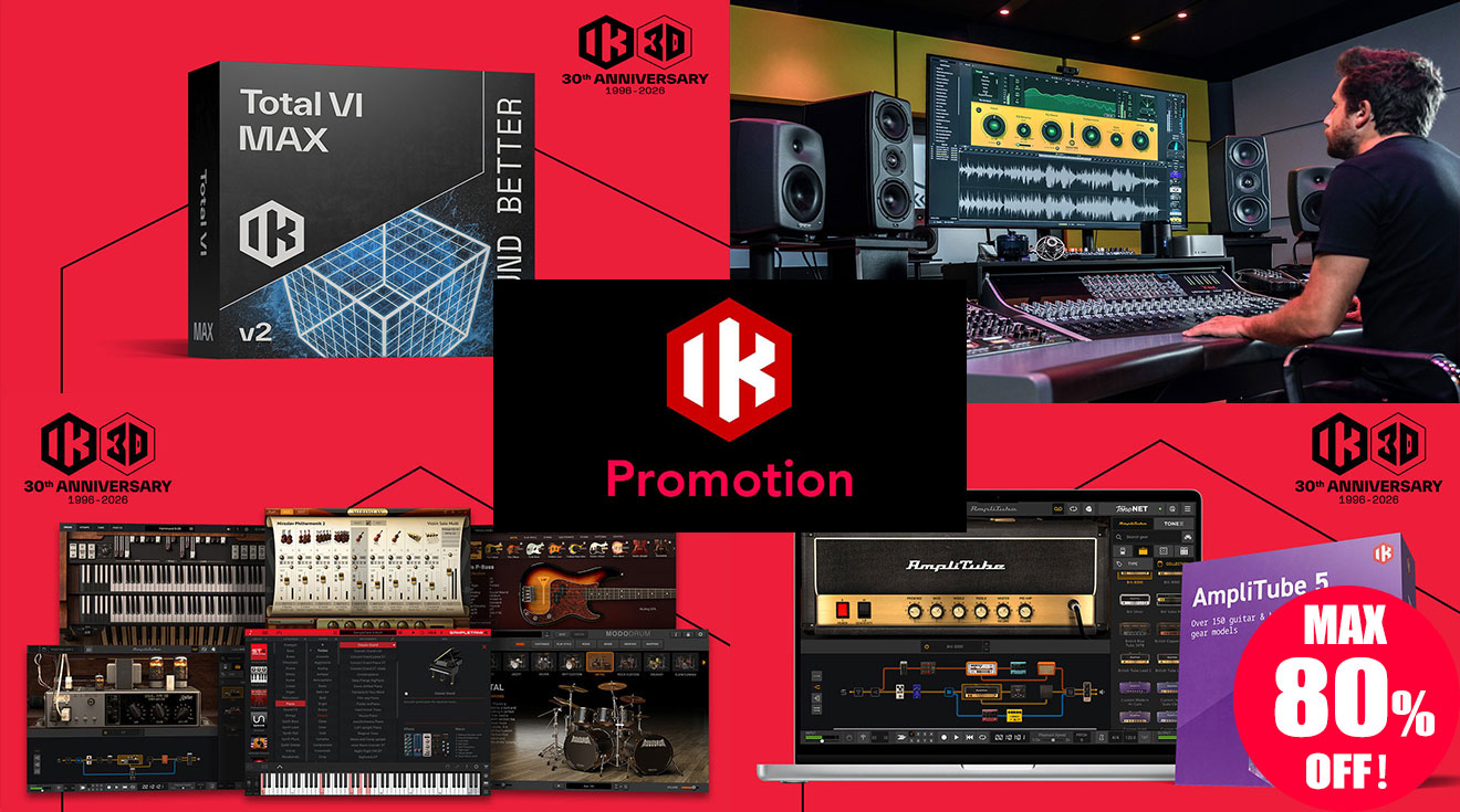 IK Multimediaから既存プロモ「Amplitube 5 プロモは製品追加」と「Spring Instrument プロモは一部値下げ」& 新規プロモ「Total VI MAXプロモ」と「T-RackS 4大 Reverbセール【日本限定】プロモ」を発表しました!